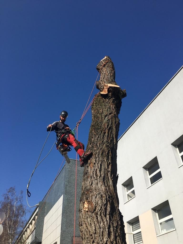 L’Elagueur-Grimpeur tronçonne alors les branches puis le bois jusqu’au sol.